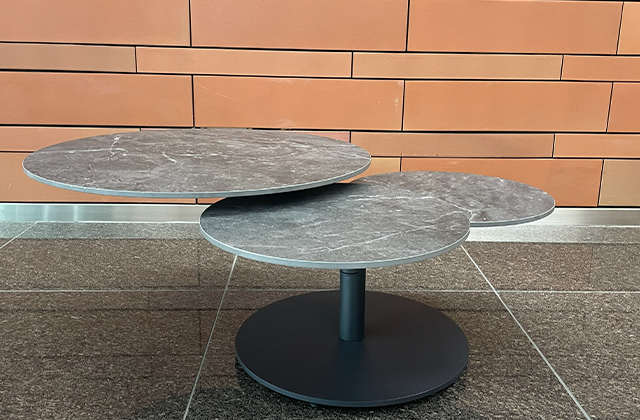 レイアウト自在、まるでアートのような3枚構成の回転式ローテーブル