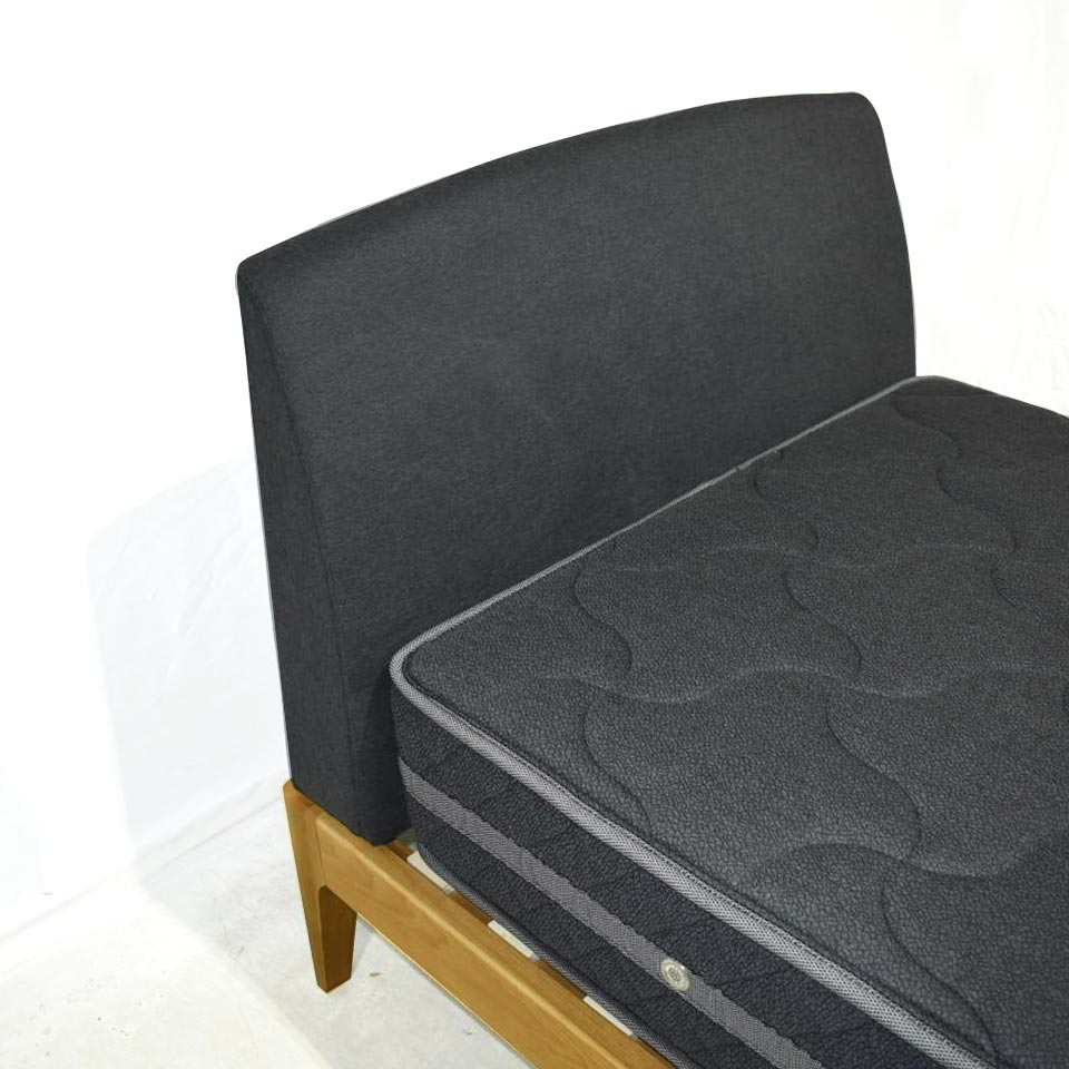 オーク無垢材のナチュラルな素材感を感じられるNOCEオリジナルのベッドフレームです。ヘッドレストには落ち着いたグレーのファブリックを使用しています。シンプルな色でお部屋にも馴染みやすいデザインです。 ※マットレスは別売りです。