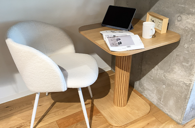 縦のリズムが空間に映える、一本脚デザインのサイドテーブル