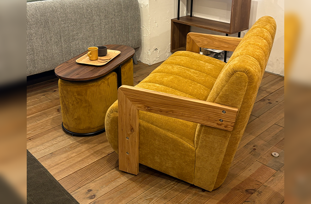 コンパクトなサイズ感は空間に余白を生み出し、ミニマリズムのインテリアに最適。1台でも存在感があり複数台を組み合わせることでレイアウトの幅も広がります。北欧系のローテーブルと合わせれば、シンプルで温かみのある空間に。大きなお部屋でもあえてコンパクトなソファを選ぶことで、空間の広がりを活かした洗練されたコーディネートが完成します。カラーはグレー・グリーン・ワインに加え新色イエローが登場。空間にアクセントを加えたい方にもおすすめで、選ぶ色によって印象を変えながらインテリアを楽しめます。
