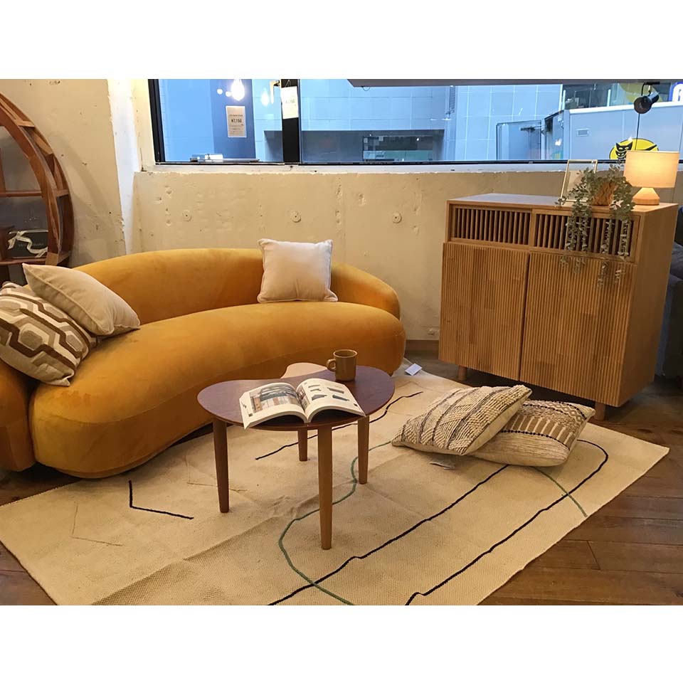 オーク材をオイルで仕上げた木の素材感を生かしたシンプルなキャビネット。 脚部の丸みのあるフォルムや、面取りを施したスリットが空間にやさしい印象を与えてくれます。90cm幅なので場所をとりすぎず、一般的なリビングやワンルームにちょうど良いサイズ感です。