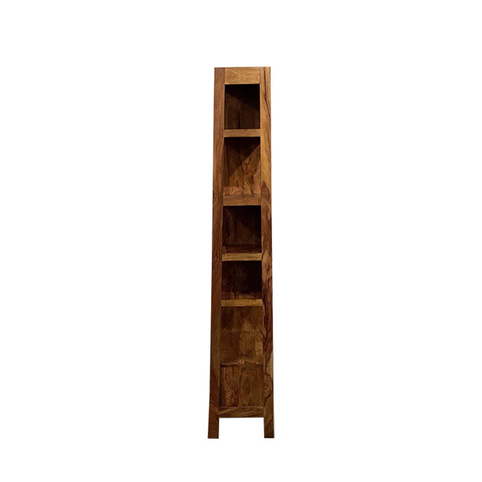 シンプルだけど個性的なモダンデザイン。シーシャムウッドの木目が美しく際立つブックシェルフ。