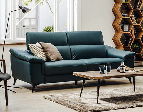 独特なニュアンスカラーが特徴的なソファーですが、本革仕様×ブラックスチールの組み合わせがちょっとハードでブルックリンスタイルにもおすすめです。座面幅、奥行きが広めであることに加え、ヘッドレストが調整可能なのでハイバック仕様にもチェンジできて座り心地良好のアイテムとなっています。カラーにインパクトがあるので異素材とのコーディネートでハイセンスな空間を演出しやすいソファーです。