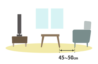 ソファーとテーブルの間の空間は、一般的に足を伸ばしてもぶつからないように45~50cmといわれています。