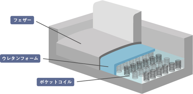 ソファーは張地やパーツの素材だけでなく、内部構造や使われている素材によっても座り心地が異なるもの。