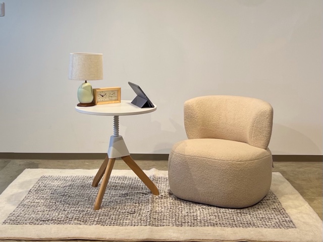 コロンとした見た目や秋冬にっぴたりなボア生地が可愛いのはもちろん、柔らかい肌触りとふわっとした座り心地、包まれる様な背もたれで1脚あるだけで目でも体でも癒されくつろげる空間になります。 座面幅、奥行きも一般的なチェアよりもゆとりがあり、座面高もあまり高くないので自分だけの空間でゆっくりくつろぎたい方におすすめです。 1人掛けのソファほどスペースを取らず、チェアほどカジュアルではないいいとこ取りのチェアを新潟店にてお試しいただけます。ご来店をお待ちしております。