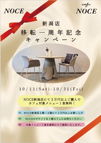 NOCE新潟店・CafeNOCE新潟店 移転1周年&カフェオープン記念キャンペーンのご案内